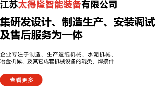 江蘇太得隆智能裝備有限公司(系原昆山太得隆機(jī)械有限公司,蘇州工業(yè)園區(qū)太得隆機(jī)械有限公司組成)位于中國(guó)-蘇錫通科技產(chǎn)業(yè)園區(qū),是一家集研發(fā)設(shè)計(jì)、制造生產(chǎn)、安裝調(diào)試及售后服務(wù)為一體的、制造、生產(chǎn)造紙機(jī)械、水泥機(jī)械、冶金機(jī)械、及其它成套機(jī)械設(shè)備的輥類(lèi)、焊接件的股份制內(nèi)資企業(yè)。公司注冊(cè)資金 15000 萬(wàn)元,擁有總資產(chǎn) 2 億余元。 目前公司擁有員工 100 余人,其中工程師以上各類(lèi)工程技術(shù)人員 20 余人。是江蘇省科技民營(yíng)企業(yè)。公司設(shè)有一個(gè)高新特種紙機(jī)研發(fā)中心和數(shù)控、機(jī)加、板金、裝配車(chē)間。現(xiàn)已形成了年銷(xiāo)售產(chǎn)值 1.5~2 億元、利稅 1000~2000 萬(wàn)元的設(shè)計(jì)、開(kāi)發(fā)和生產(chǎn)能力。 公司成立以來(lái),始終把《發(fā)展是硬道理》放在第一位,堅(jiān)定不移...